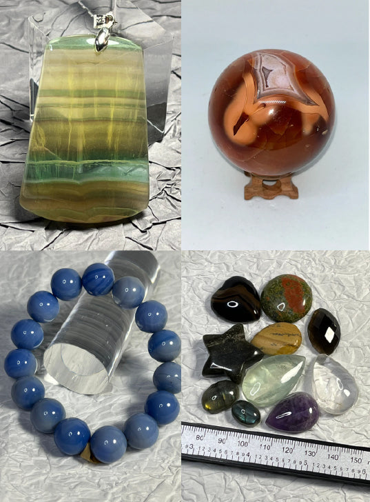 Bracelets, colliers, pendentifs et cabochons en pierres précieuses et semi-précieuses, façonnés avec précision pour allier élégance et bienfaits naturels.