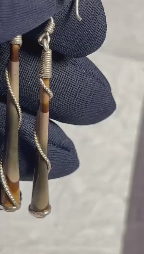 Boucles d’Oreilles en Jaspe Polychrome (Artisanat de Madagascar, travaillé sur argent non poinçonné )