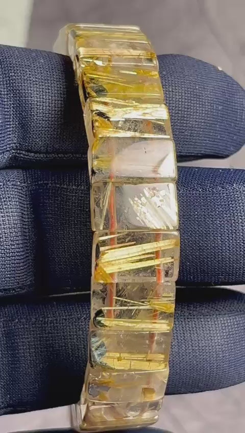 Ce bracelet réunit trois minéraux puissants : la clarté du Cristal de Roche, la lumière solaire des Rutiles Dorés et la densité protectrice de l’Hématite. Une manchette d’exception, à l’énergie rare.