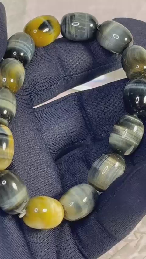 Ce bracelet de qualité supérieure révèle toute la puissance de l’œil de tigre, avec des reflets dorés profonds et un poli parfait. Véritable talisman protecteur, il allie charisme, stabilité et énergie solaire.