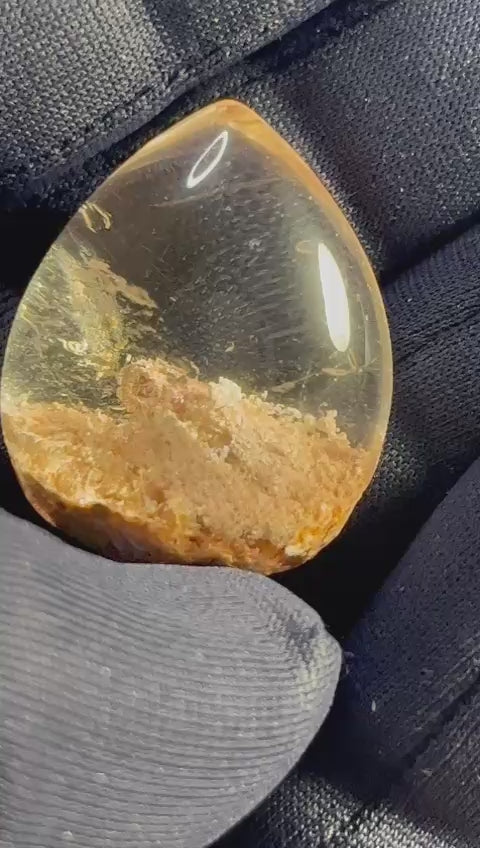 Ce cabochon en Quartz Jardin (ou Lodolite) offre un spectacle fascinant : inclusions naturelles évoquant des paysages, des mousses ou des coraux. Une pierre pour les rêveurs et les artistes.