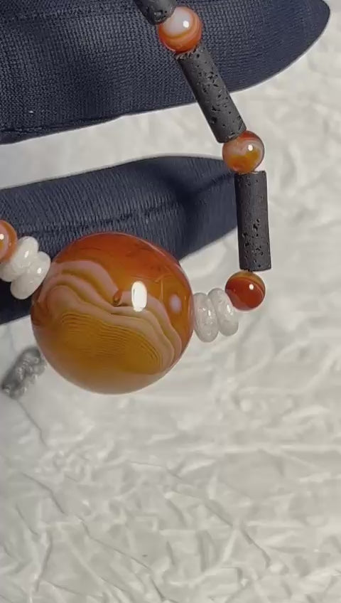 Ce collier associe la puissance brute de la Pierre de Lave à la chaleur lumineuse de la Cornaline. Un bijou énergisant, à la fois tribal et élégant, qui relie aux forces profondes de la Terre.