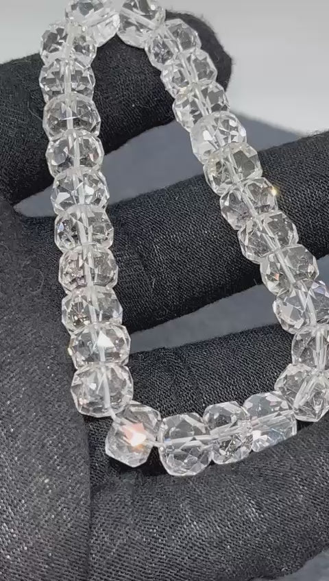 🔹 Cristal de Roche naturel de haute qualité, taillé en perles donuts facettées
