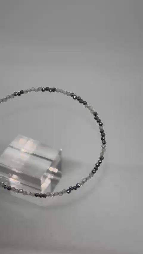Ce bracelet en perles facettées associe la profondeur métallique du Terrahertz à l’éclat mystique de la Labradorite. Ensemble, ces deux pierres créent un bijou moderne et sophistiqué, aux reflets captivants qui évoluent avec la lumière.